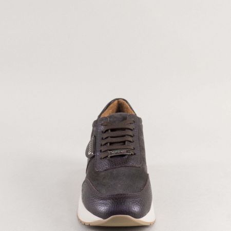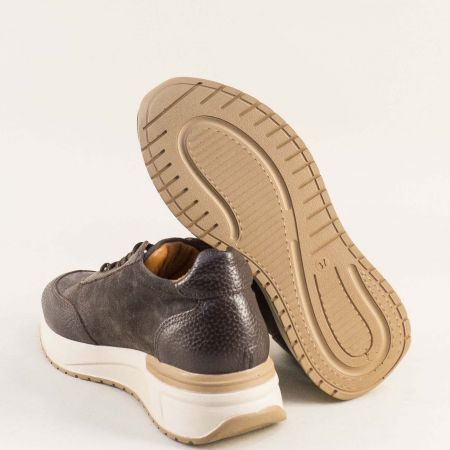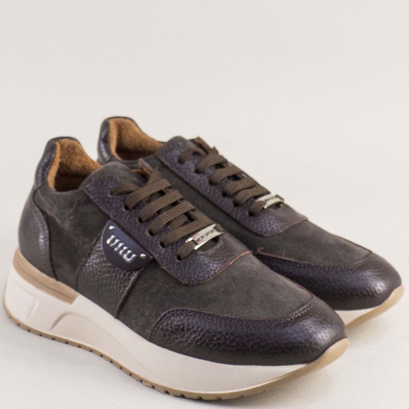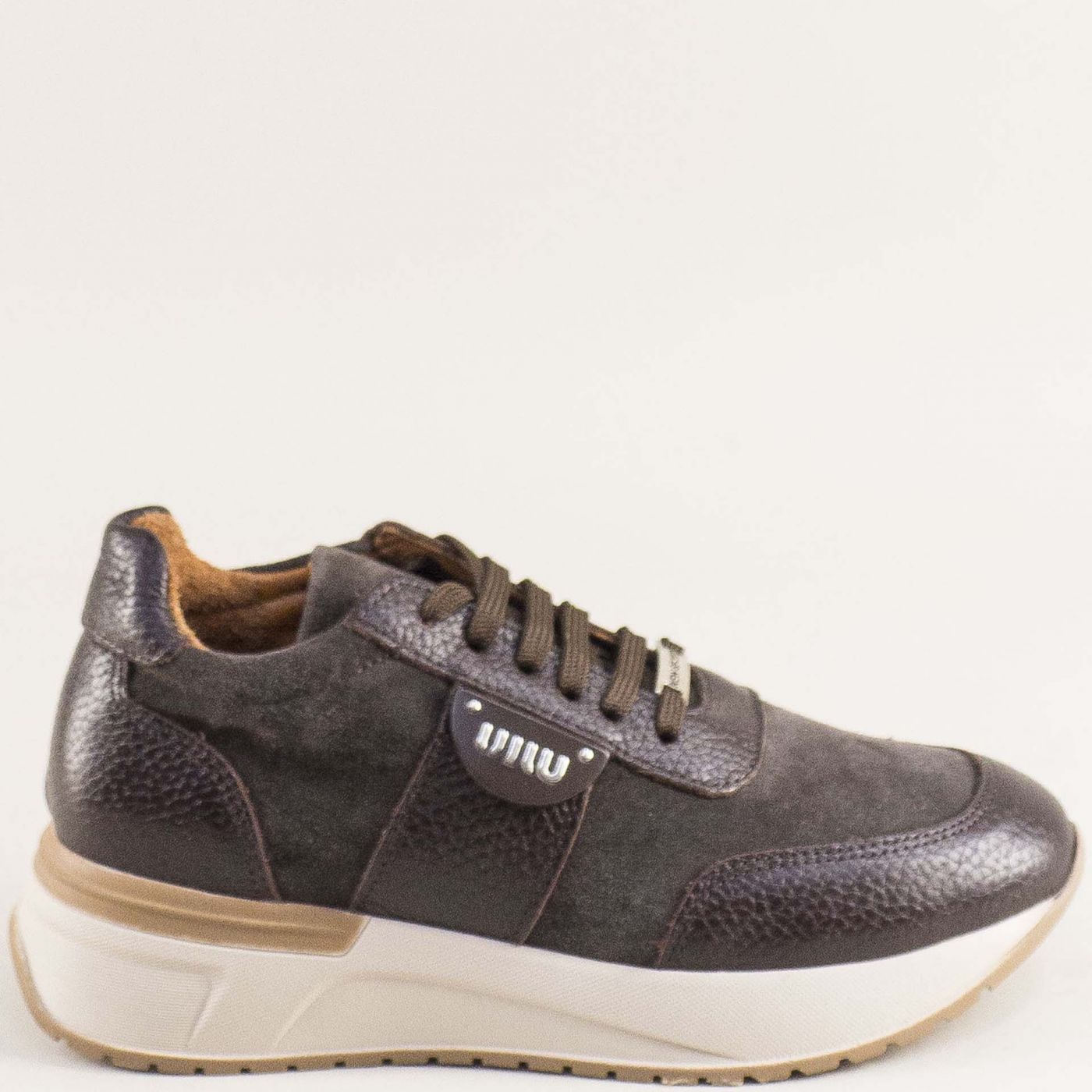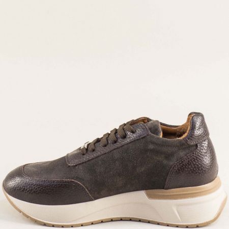 Естествен велур дамски сникърси на модерна платформа в кафяво с кожен акцент 3075848kk