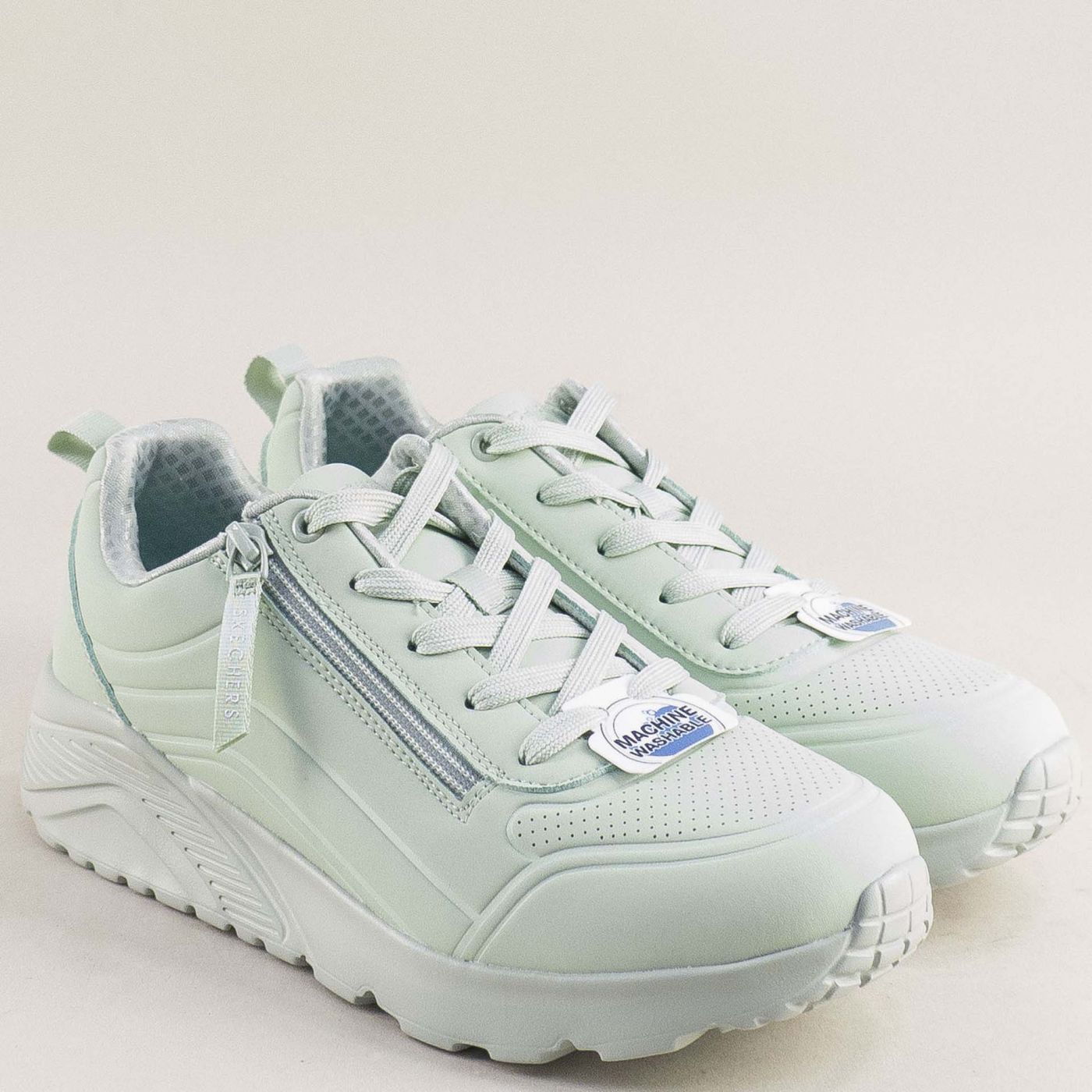 Комфортни дамски сникърси на SKECHERS с Memory пяна в зелен цвят 310387z