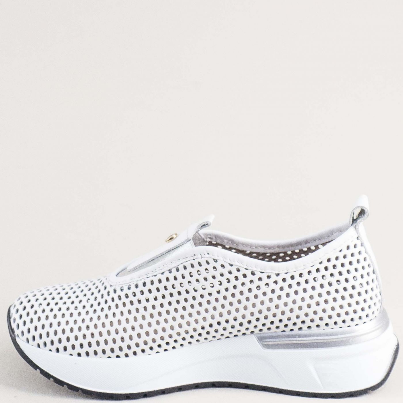 Естествена кожа дамски сникърси в бял цвят с ластик за разширяване 521560b