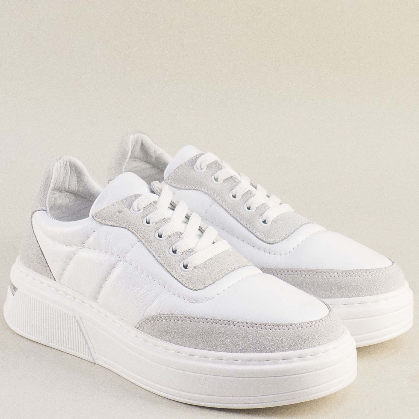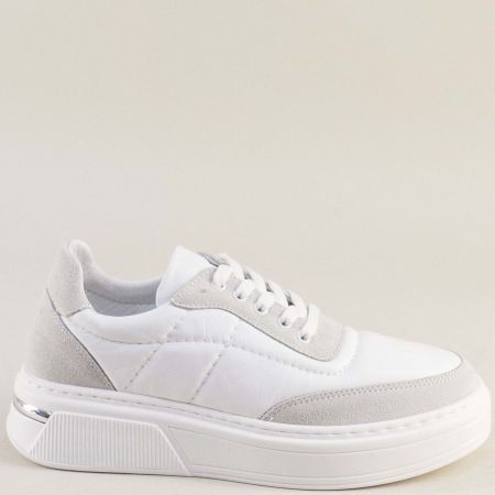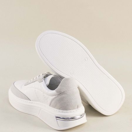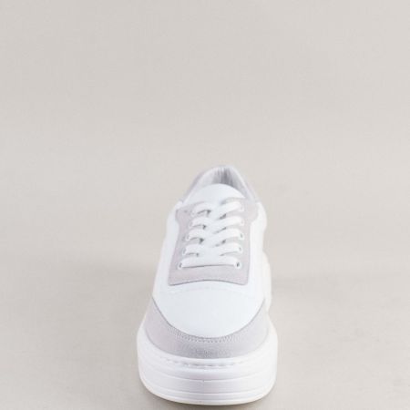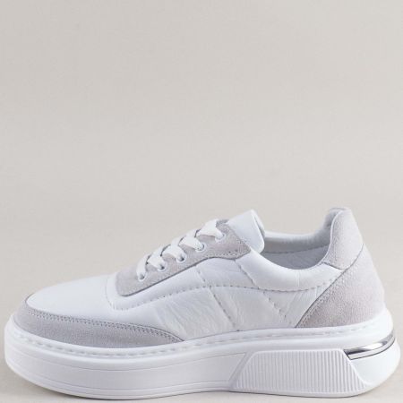 Дамски сникърси на равно ходило в бяла кожа и сив акцент k101b