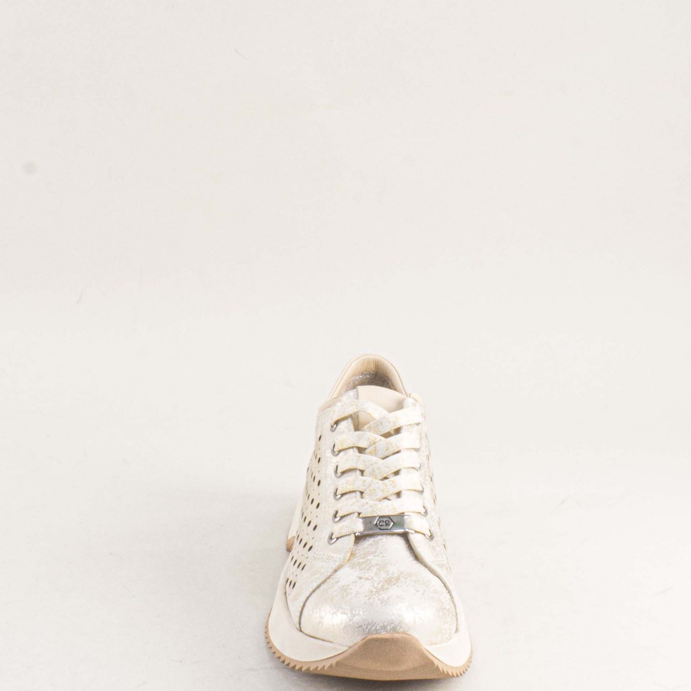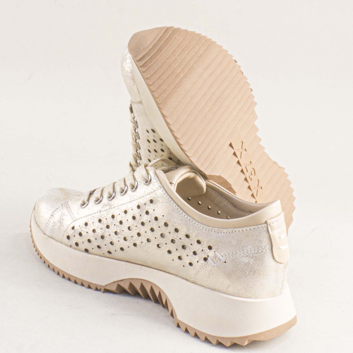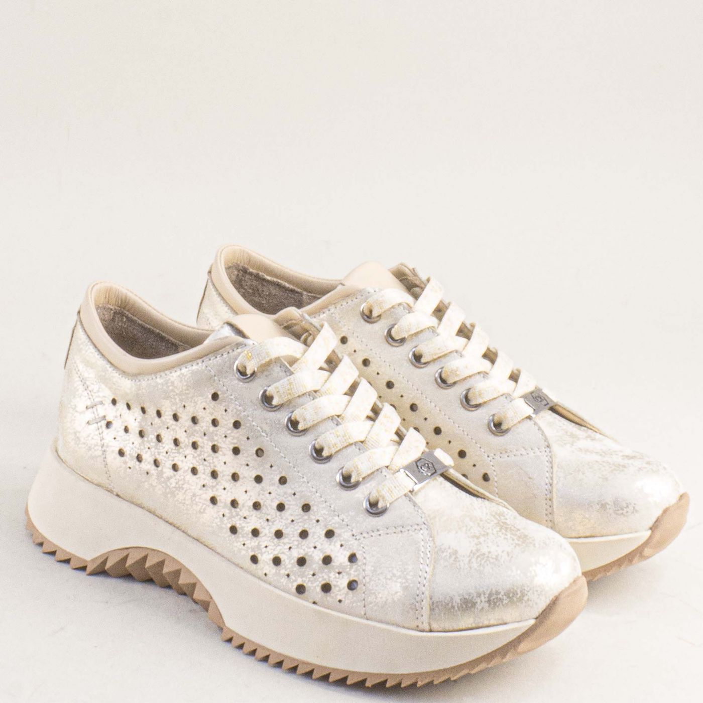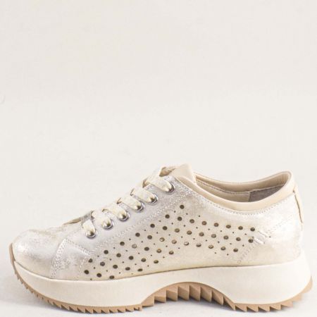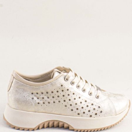 Дамски обувки на спортно ходило с перфорация и златист блясък k19033dzl