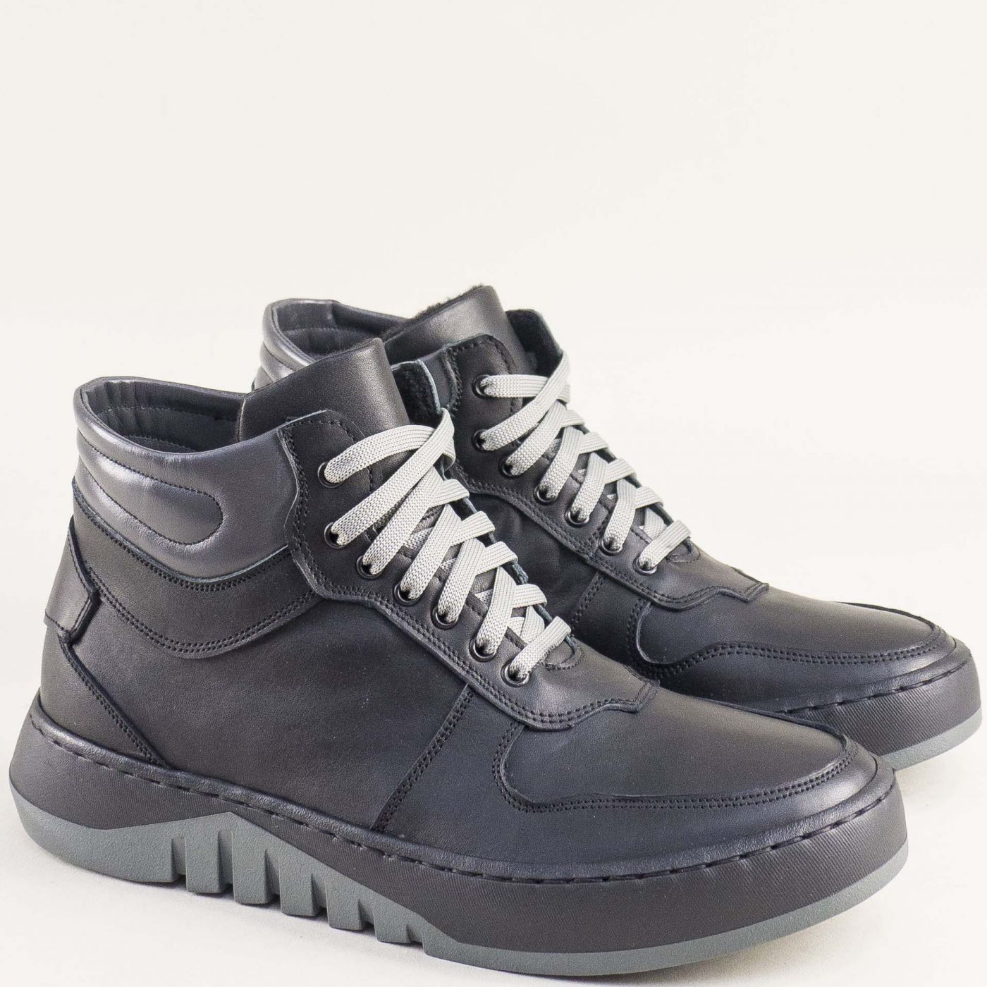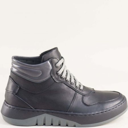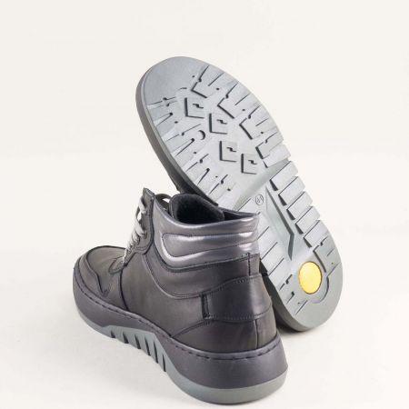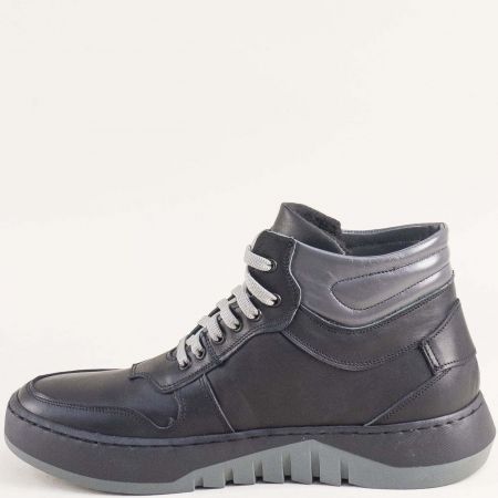 Мъжки боти в черна естествена кожа с връзки на комфортно ходило 410gringchsv